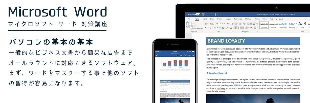 特にWORDは、ただのワープロソフトというだけでなく、今後学ぶ、様々なソフトウェアの基本となる事を学ぶのに非常に有用なソフトです。まずはワードをマスターする。そこからExcelやPowerPoint等を学ぶとスムーズに学習する事ができます。